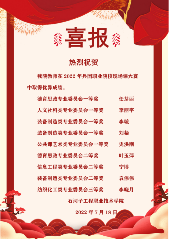 beat365官网教师在2022年兵团职业院校现场课大赛中取得优异成绩