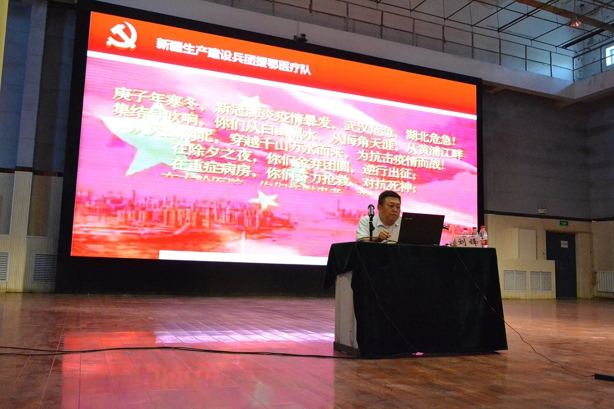 6月5日兵团援鄂医疗队总领队、石大医学院第一附属医院党委书记刘锋来院宣讲