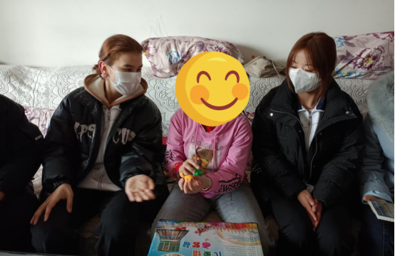 志愿者们在走访老人家庭时,主动关心爷爷奶奶身体健康状况,为他们读报读书、交流社会新闻、听他们讲述自身故事,仔细倾听,耐心陪伴。提前得知听障儿童喜欢绘画,在慰问时,志愿者拿出提前准备的手工制作玩具和整套彩色笔,以及插画书籍等,小朋友流露出天真烂漫的笑容。