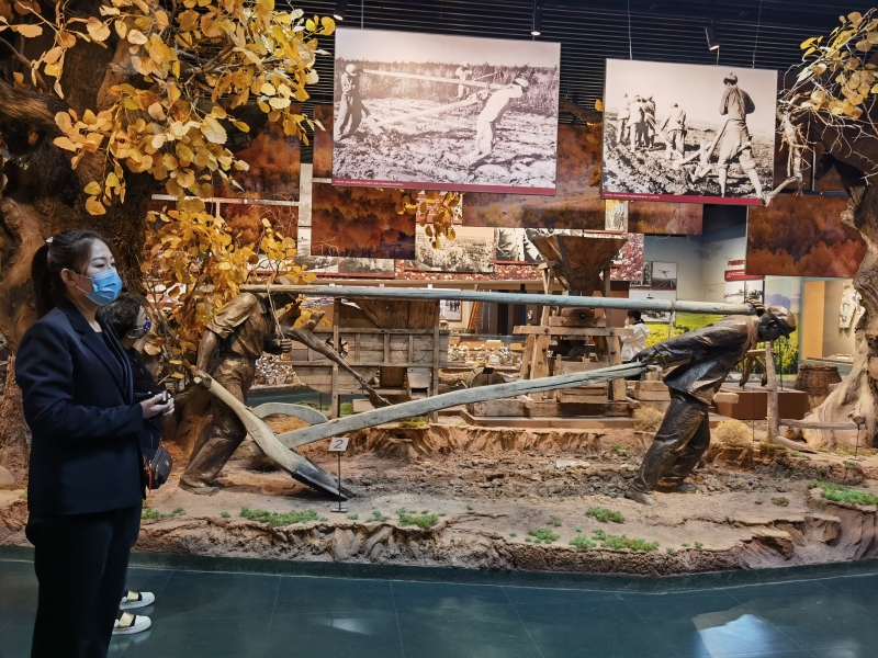 思政教师观看兵团历史文物