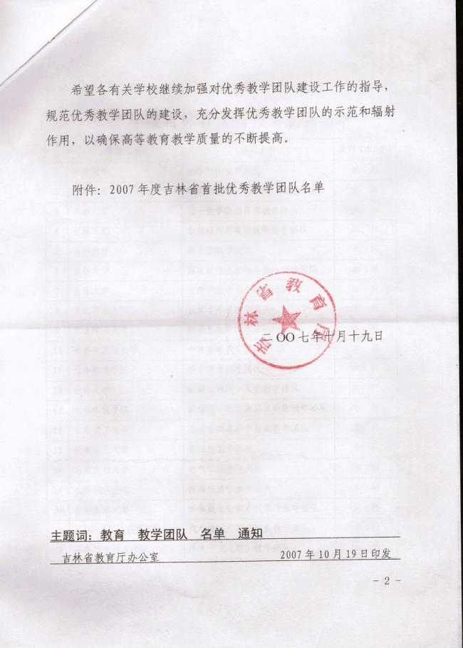 省级优秀教学团队
